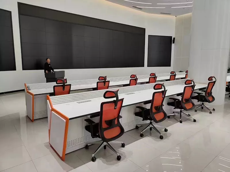 Temei Rui Control Room Monitoring Console 20 வருட தொழில் நிபுணத்துவம் கொண்ட அனுபவம் வாய்ந்த சீன உற்பத்தியாளரால் வடிவமைக்கப்பட்டுள்ளது. 10,000㎡ தொழிற்சாலையில் தயாரிக்கப்பட்ட இந்த கன்சோல் குளிர்-உருட்டப்பட்ட எஃகு கட்டுமானம், பணிச்சூழலியல் தனிப்பயனாக்கம், திறமையான கேபிள் மேலாண்மை மற்றும் தொழில்முறை கட்டுப்பாட்டு அறைகளுக்கான நிலையான 24/7 செயல்பாடு ஆகியவற்றைக் கொண்டுள்ளது.